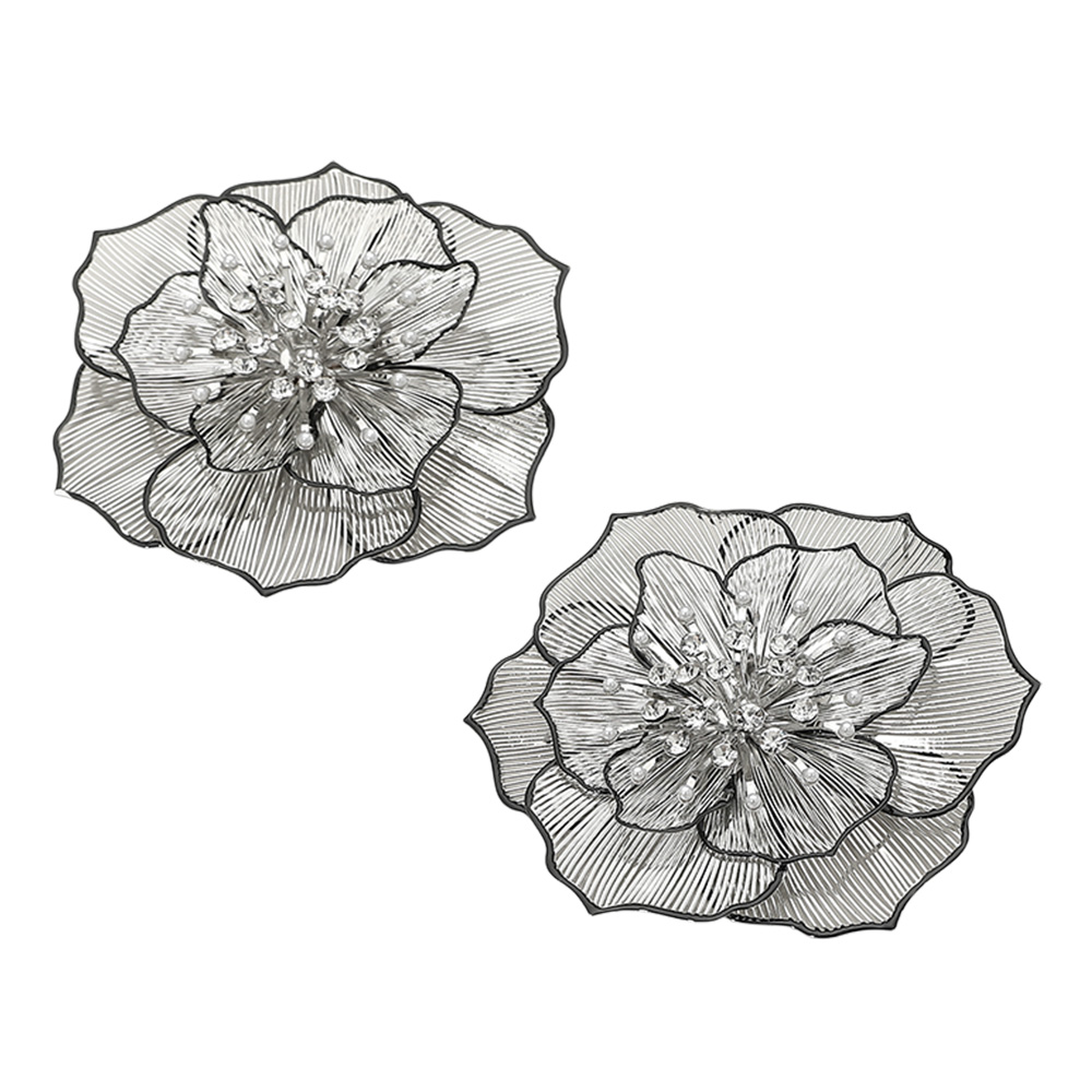Details • Size : 3" X 2.6" • Post Back • Chic layered wire flower brooch with sparkling crystal accents. A statement floral pin perfect for jackets, scarves, or bags. Lightweight yet eye-catching—adds elegance and charm to any outfit. • Lead and Nickel Compliant