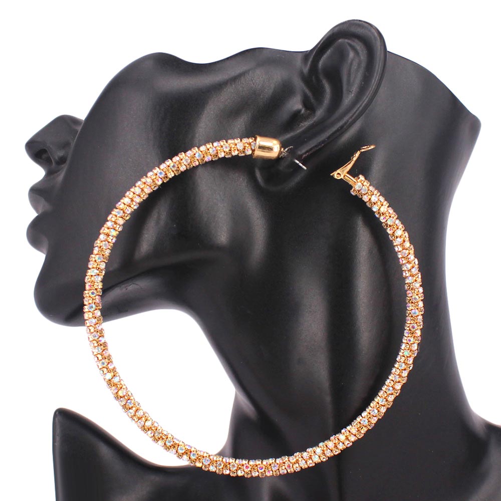 Details • Size : 4" X 4" • Omega Closure • Shine bright with these oversized rhinestone hoop earrings designed for maximum sparkle and glamour. Perfect for parties, night outs, or special events, they deliver bold style and lightweight comfort, making them the ultimate statement accessory for standout looks. • Lead and Nickel Compliant