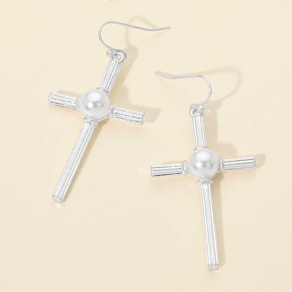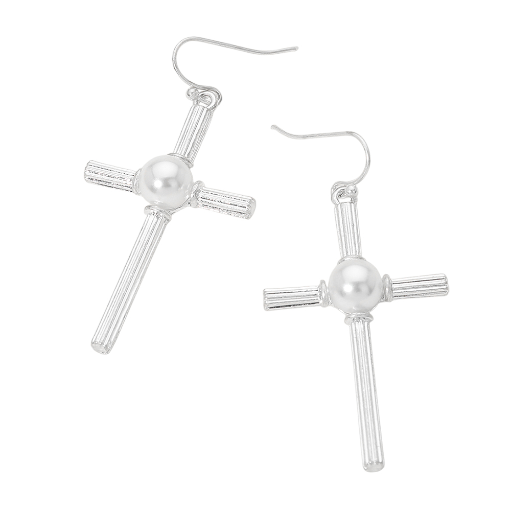 Pearl Accent Chunky Textured Cross Drop Dangle Earrings Pearl Accent Chunky Textured Cross Drop Dangle Earrings Pearl Accent Chunky Textured Cross Drop Dangle Earrings