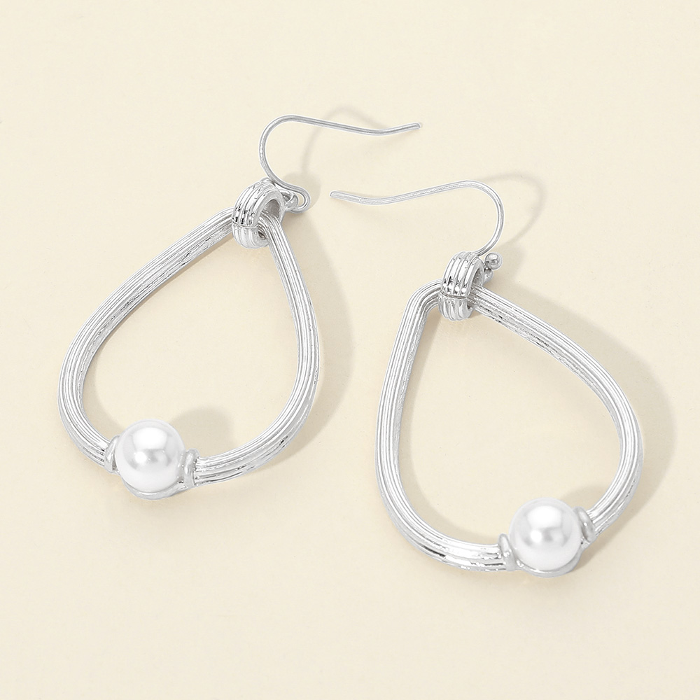 Pearl Accent Textured Chunky Teardrop Dangle Earrings Pearl Accent Textured Chunky Teardrop Dangle Earrings
