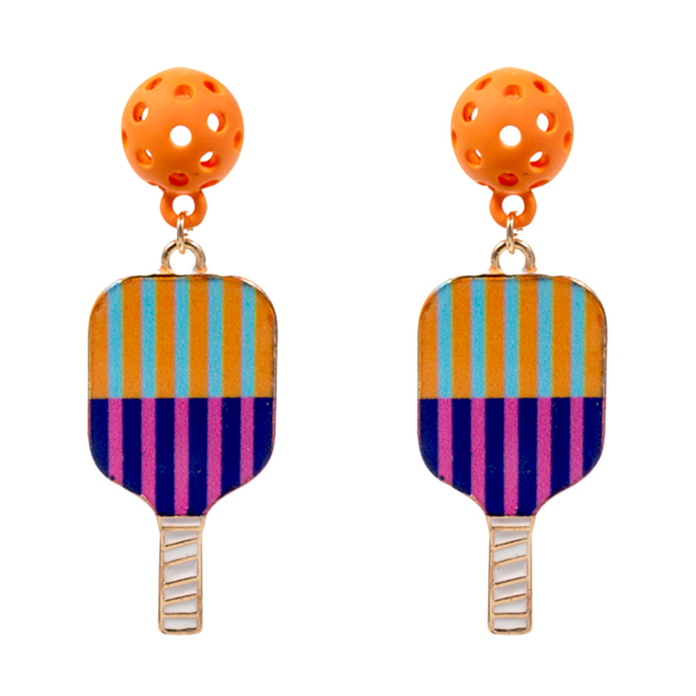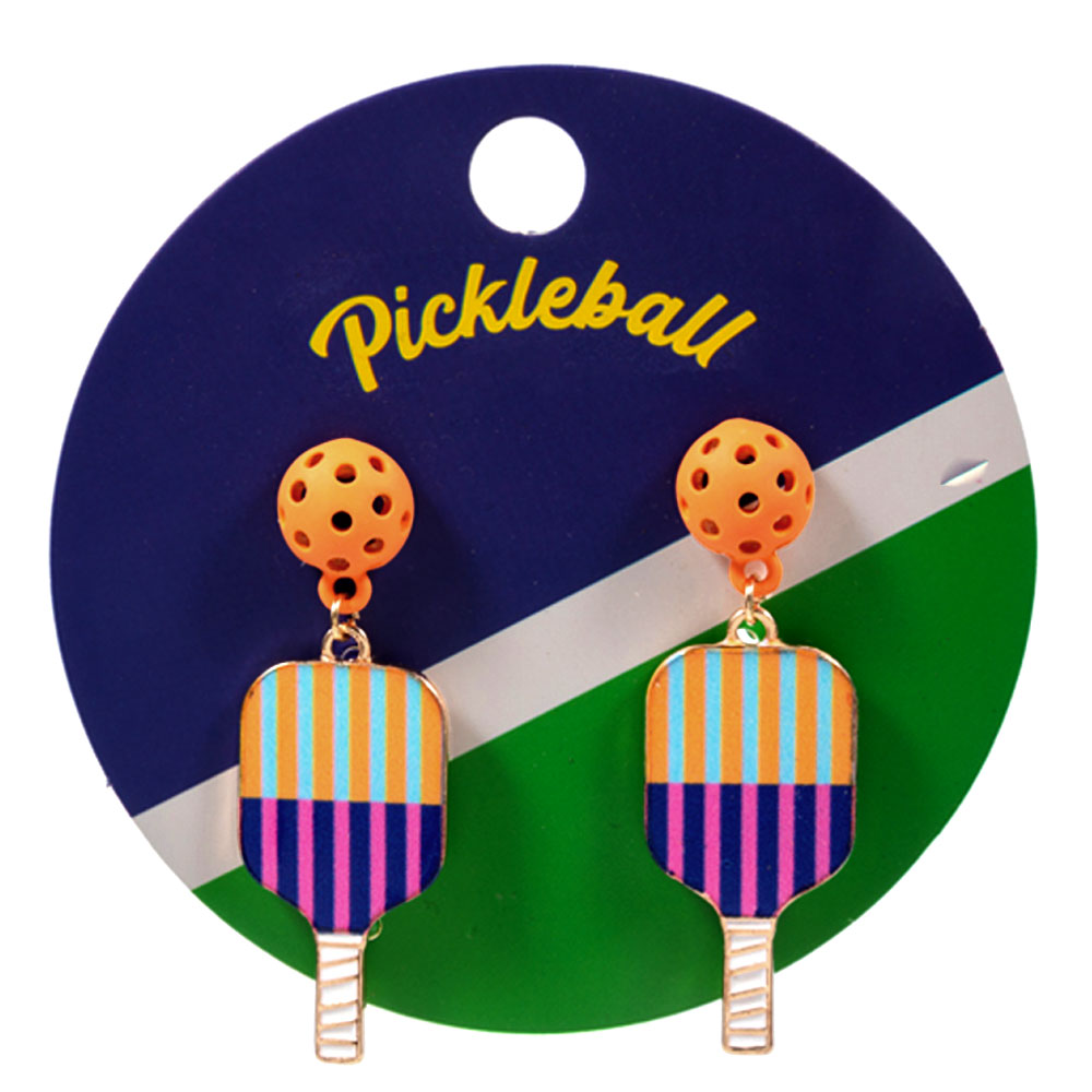 • These pickleball paddle drop earrings feature a playful ball accent and sporty paddle design that adds fun energy to any outfit. Lightweight and eye catching, they are ideal for game day looks, casual styling, gifting, or pickleball enthusiasts who want accessories that celebrate the sport with personality and charm.