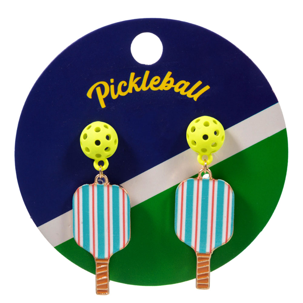 Details • Size : 0.7" X 1.75" • Post Back • These pickleball paddle drop earrings feature a playful ball accent and sporty paddle design that adds fun energy to any outfit. Lightweight and eye catching, they are ideal for game day looks, casual styling, gifting, or pickleball enthusiasts who want accessories that celebrate the sport with personality and charm. • Lead and Nickel Compliant
