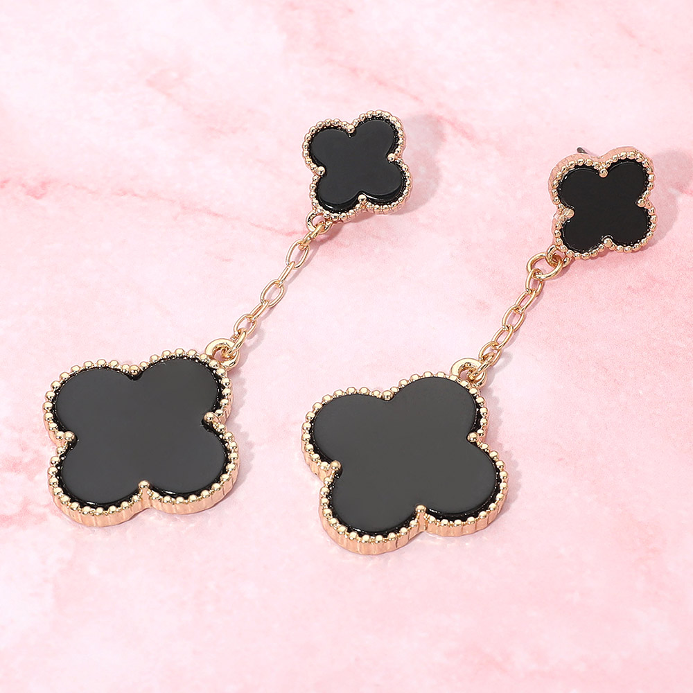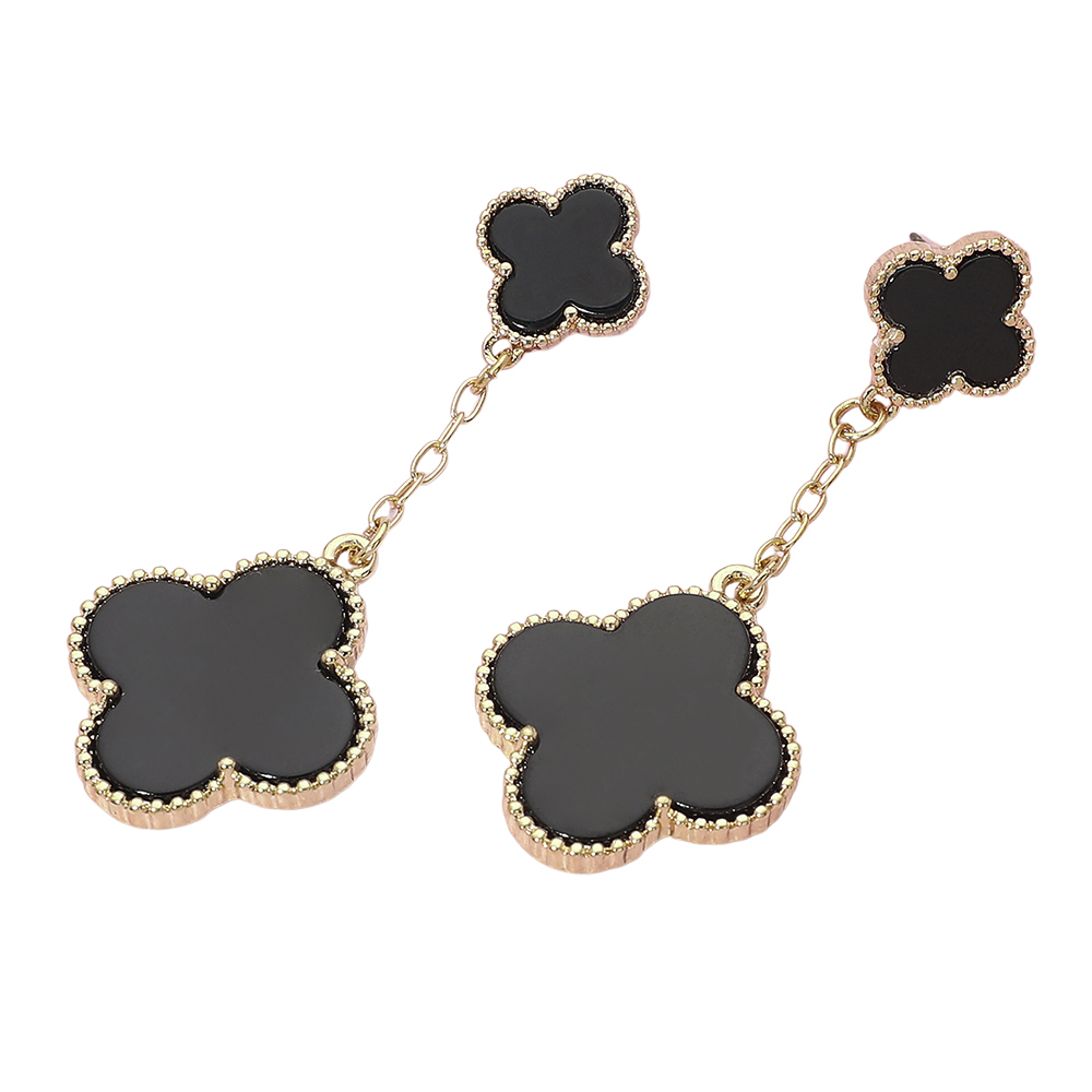 • Stylish chain drop earrings featuring layered quatrefoil charms for a soft, elegant look with gentle movement. This timeless silhouette adds refined detail to everyday outfits and special occasion styling, making it a versatile choice for boutiques, gift assortments, and curated jewelry collections seeking modern yet classic appeal.