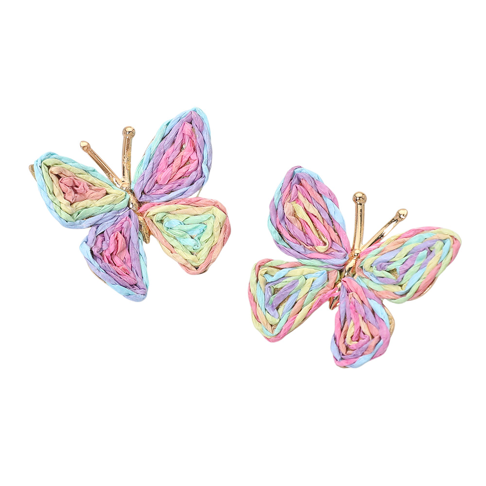 Details • Size : 1.5" X 1.3" • Post Back • These butterfly raffia woven texture stud earrings feature dimensional layered detailing with a lightweight feel and charming silhouette. Designed to add playful elegance and boutique appeal, they are perfect for everyday wear, gifting, seasonal collections, spring outfits, casual styling, and trend-driven accessory assortments. • Lead and Nickel Compliant