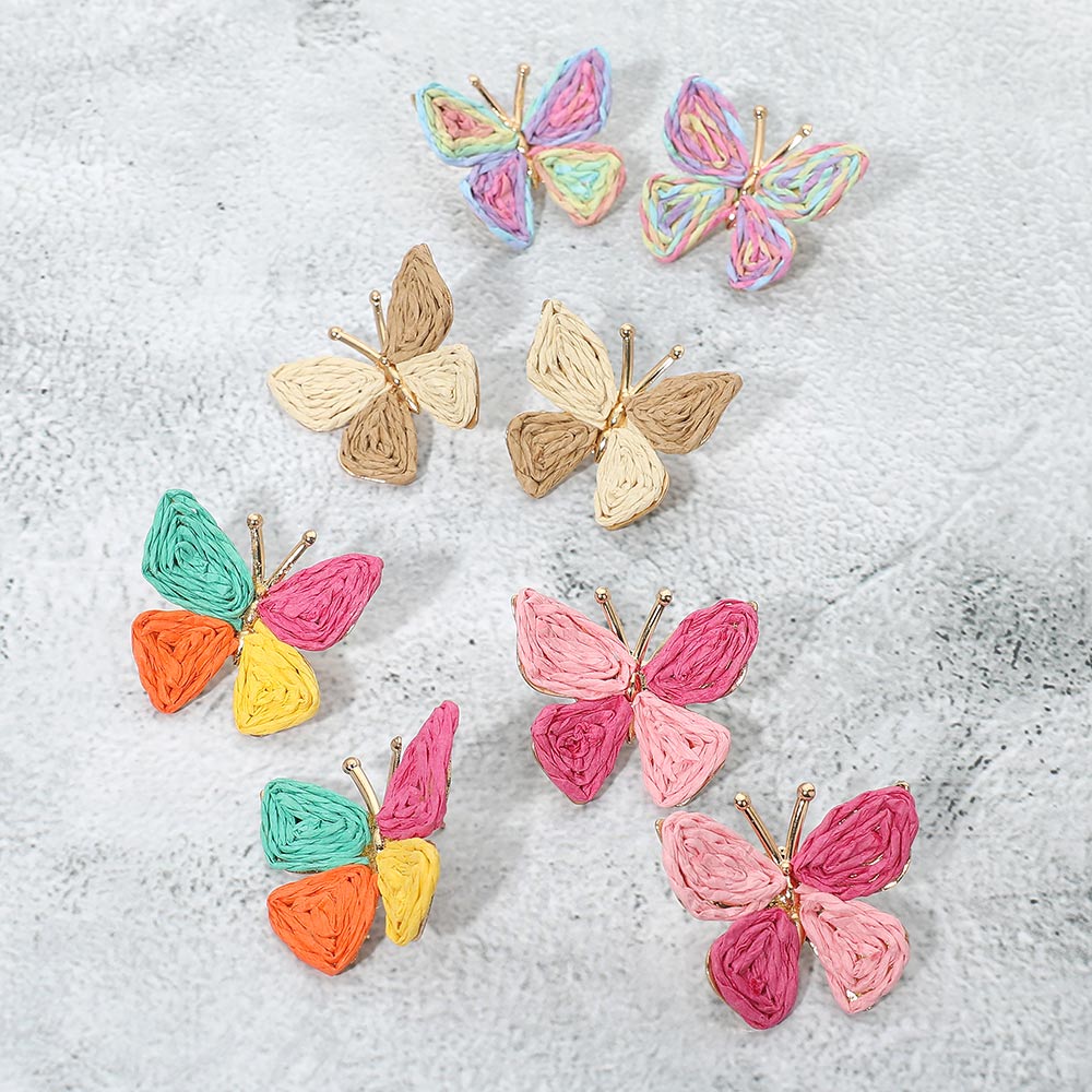 Details • Size : 1.5" X 1.3" • Post Back • These butterfly raffia woven texture stud earrings feature dimensional layered detailing with a lightweight feel and charming silhouette. Designed to add playful elegance and boutique appeal, they are perfect for everyday wear, gifting, seasonal collections, spring outfits, casual styling, and trend-driven accessory assortments. • Lead and Nickel Compliant