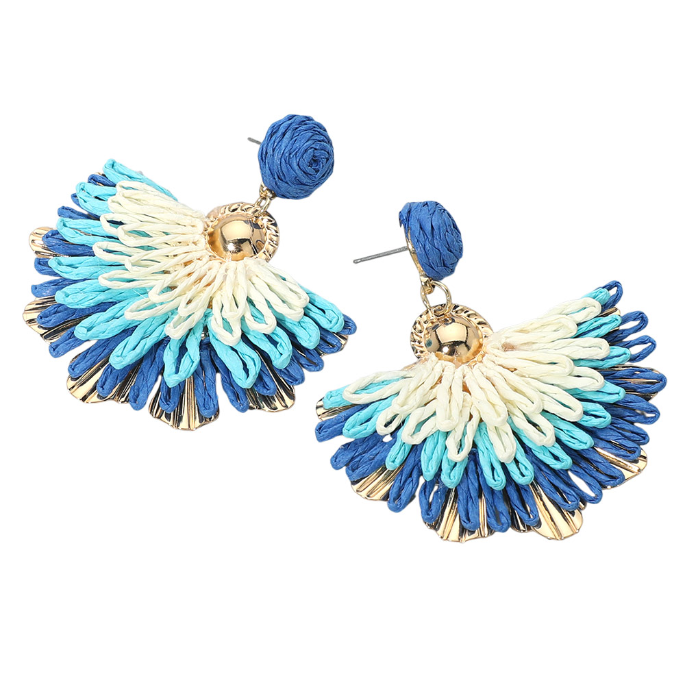 Details • Size : 2.25" X 2.6" • Post Back • These fan fringe statement drop earrings feature layered woven-inspired detailing and dramatic movement for eye-catching style. Designed to elevate boutique assortments, they add bold texture and dimension, making them ideal for resort looks, summer outfits, festivals, special occasions, and fashion-forward everyday accessorizing. • Lead and Nickel Compliant