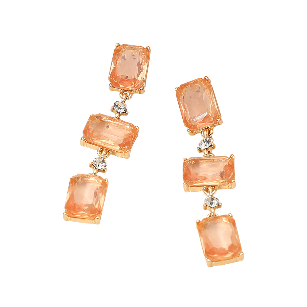 Rectangle Glass Stone Link Dropdown Earrings Rectangle Glass Stone Link Dropdown Earrings