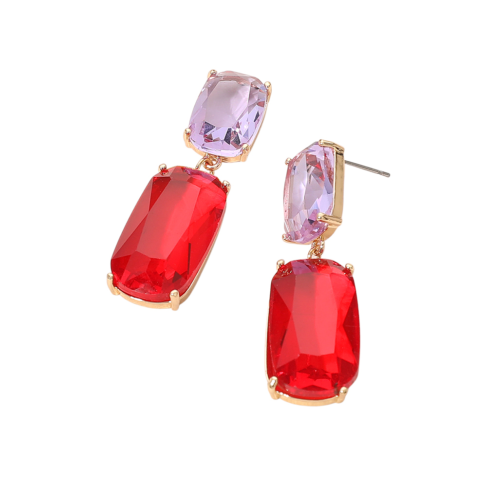 Details • Size : 0.5" X 1.8" • Post Back • Add a refined touch of glamour with these Dual Gemstone Drop Earrings. Featuring two radiant stones in complementary tones, this elegant design offers timeless sophistication and modern charm—perfect for evening wear, celebrations, or elevating your everyday style. • Brass • Lead and Nickel Compliant