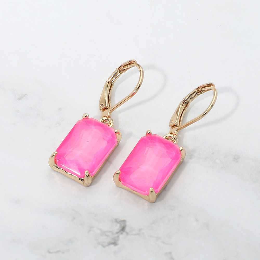 Rectangular Glass Stone Drop Dangle Earrings Rectangular Glass Stone Drop Dangle Earrings