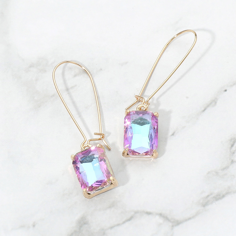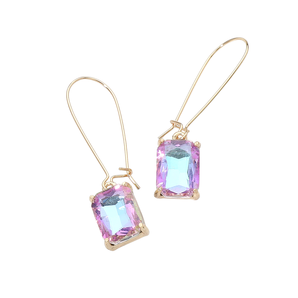 • Elegant drop earrings featuring a faceted rectangular stone suspended from a sleek hook silhouette. Designed to add refined sparkle and movement, this versatile style transitions effortlessly from daytime looks to evening wear, making it a strong addition to boutique jewelry selections, gift assortments, and trend-forward accessory collections.