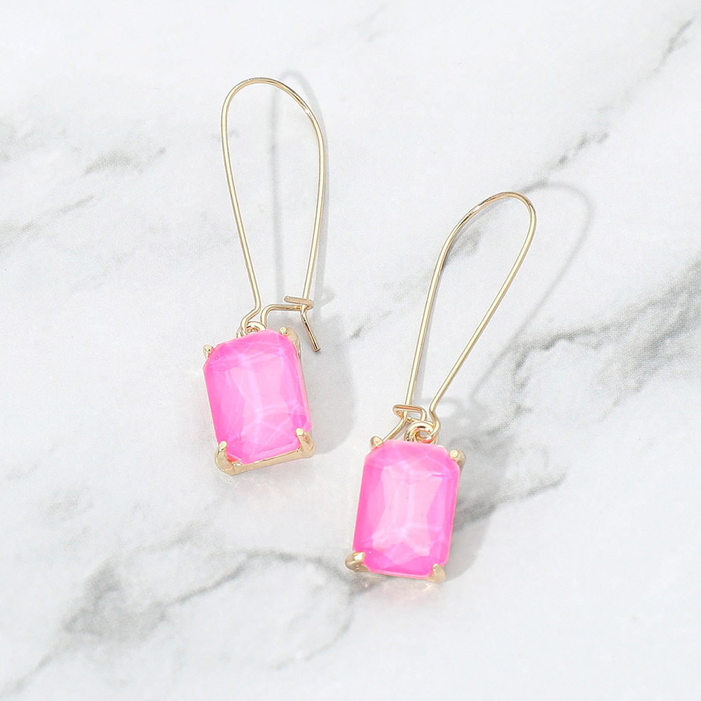 • Elegant drop earrings featuring a faceted rectangular stone suspended from a sleek hook silhouette. Designed to add refined sparkle and movement, this versatile style transitions effortlessly from daytime looks to evening wear, making it a strong addition to boutique jewelry selections, gift assortments, and trend-forward accessory collections.