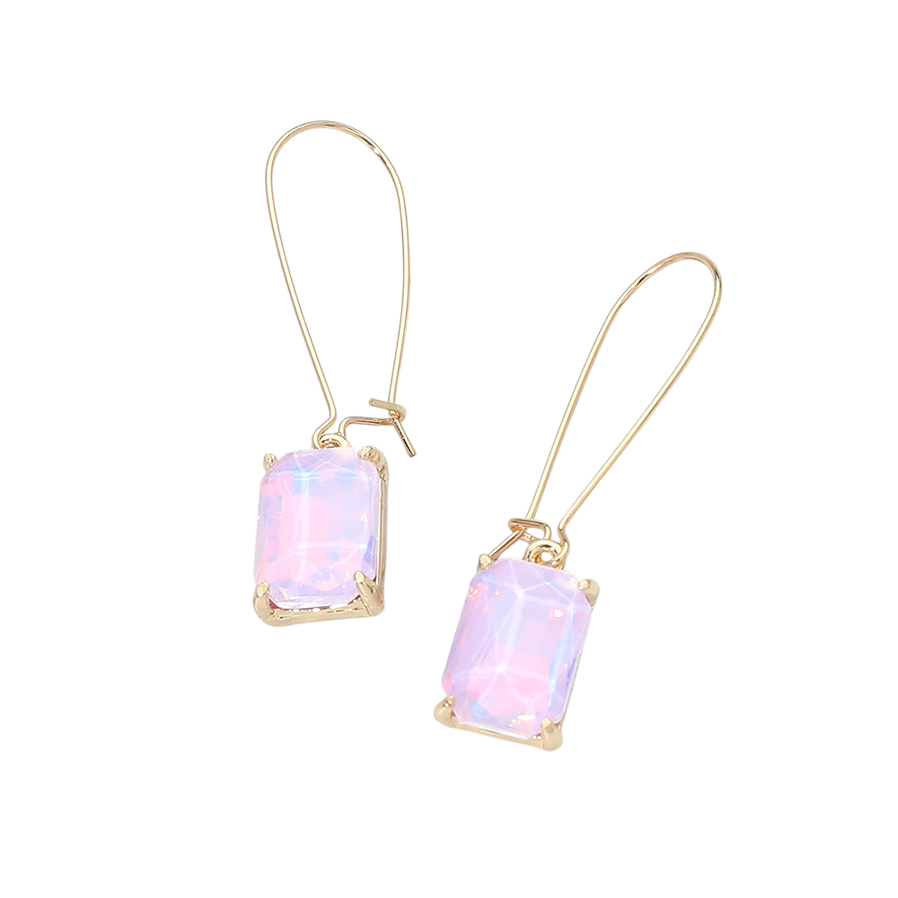 Rectangular Glass Stone Long Drop Dangle Earrings