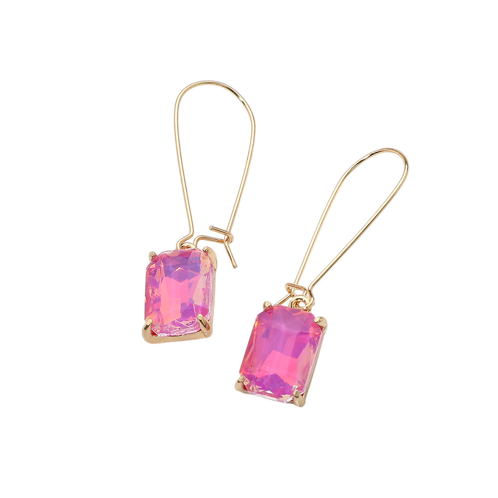 • Elegant drop earrings featuring a faceted rectangular stone suspended from a sleek hook silhouette. Designed to add refined sparkle and movement, this versatile style transitions effortlessly from daytime looks to evening wear, making it a strong addition to boutique jewelry selections, gift assortments, and trend-forward accessory collections.