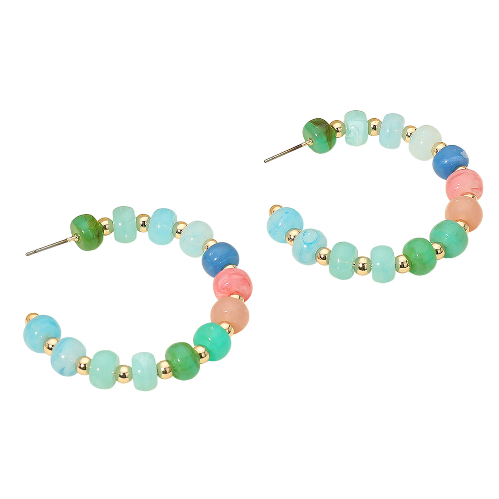 • Stylish beaded hoop earrings featuring glossy resin beads and gold-tone accents. Lightweight and comfortable for daily wear, these trendy hoops add a warm, modern touch to any outfit. Perfect for casual looks or gifting.