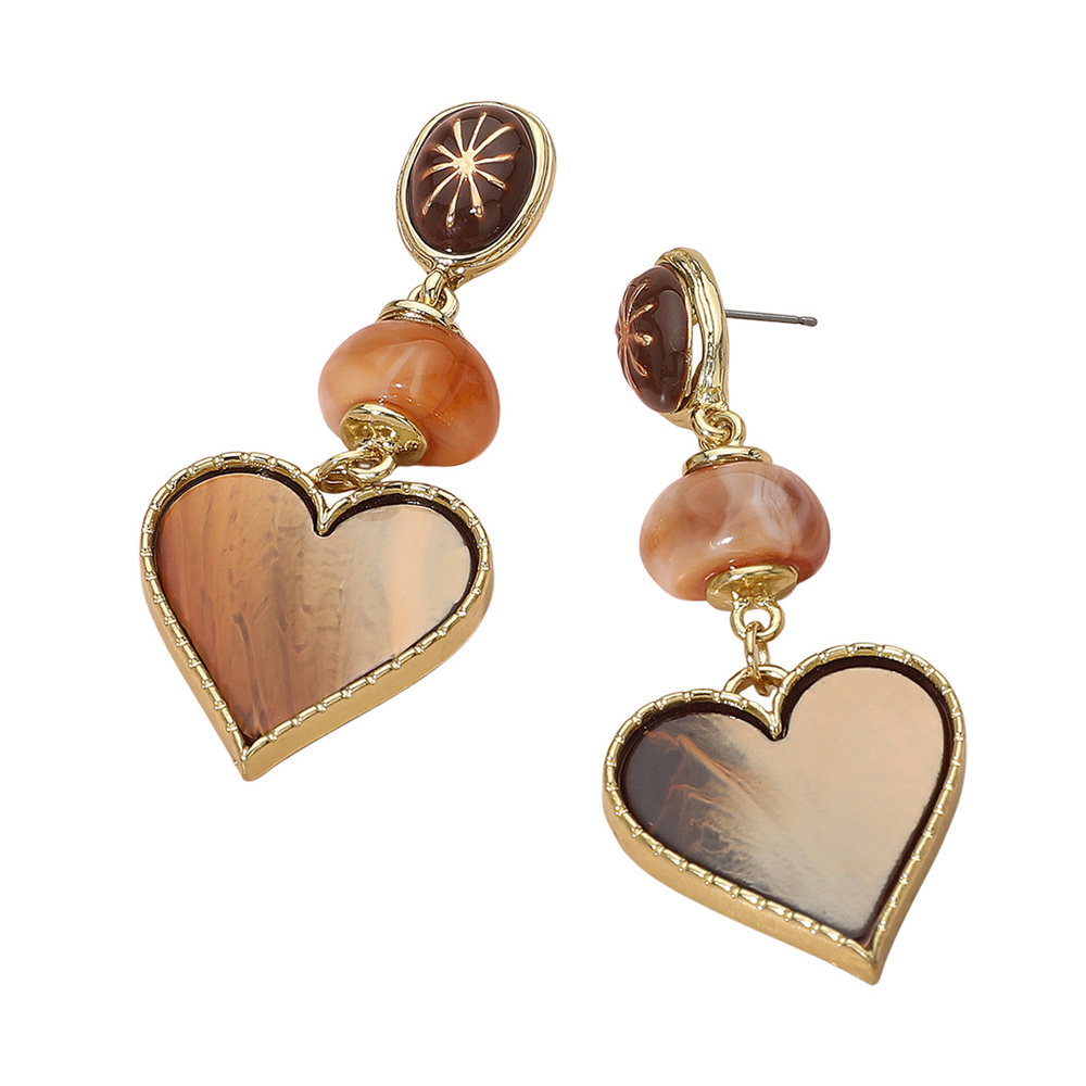 • Stylish heart drop earrings featuring a bold tortoise-pattern heart charm, layered bead details, and an elegant top accent. A standout accessory that adds chic personality to any look, perfect for elevating everyday outfits or gifting someone special.