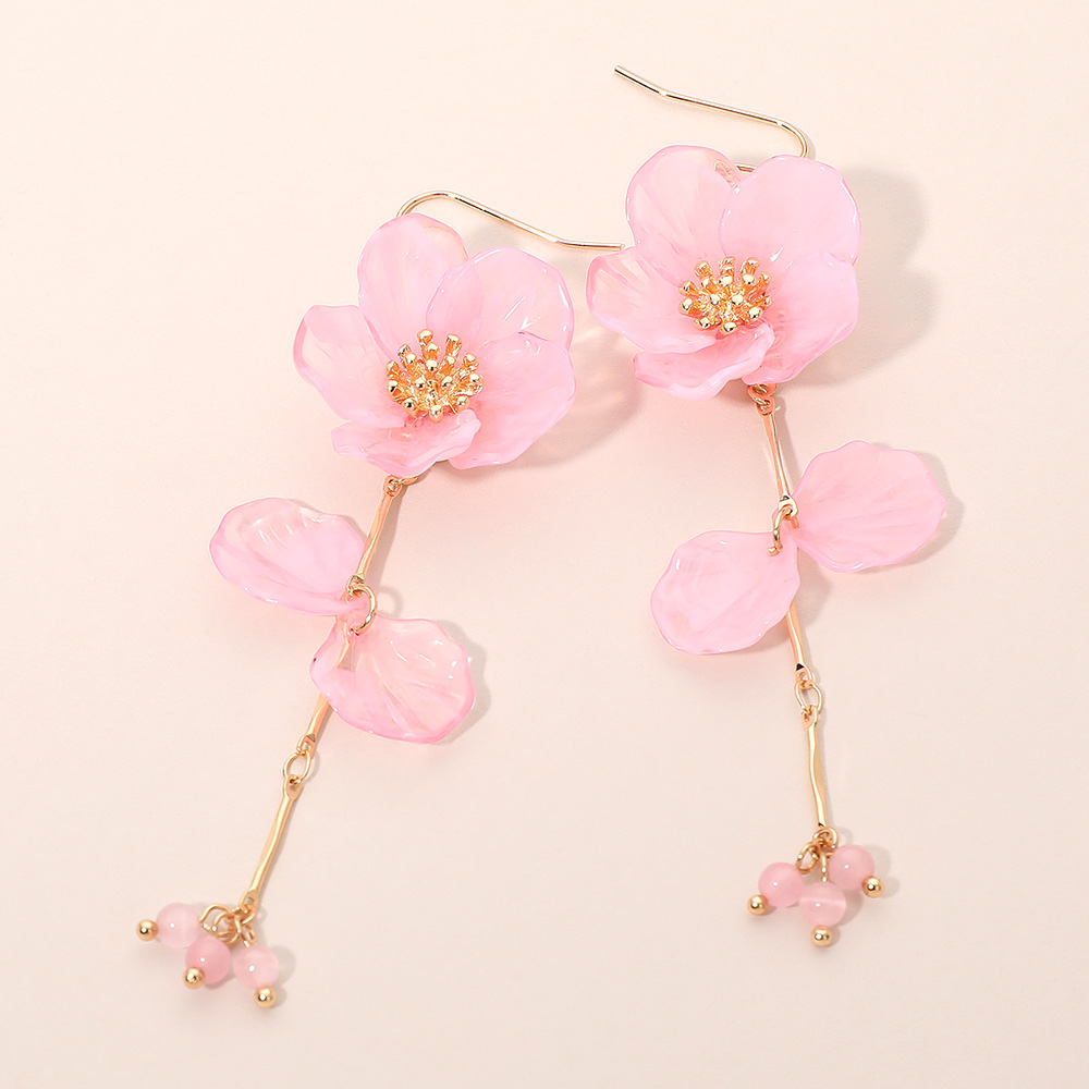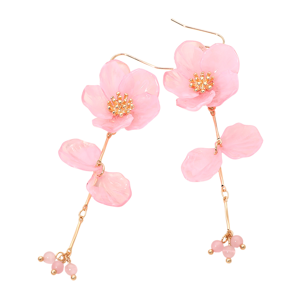 Resin Petal Floral Long Drop Earrings Resin Petal Floral Long Drop Earrings