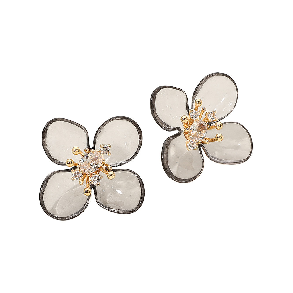 Rhinestone Accent Transparent Resin Petal Flower Earrings Rhinestone Accent Transparent Resin Petal Flower Earrings Rhinestone Accent Transparent Resin Petal Flower Earrings