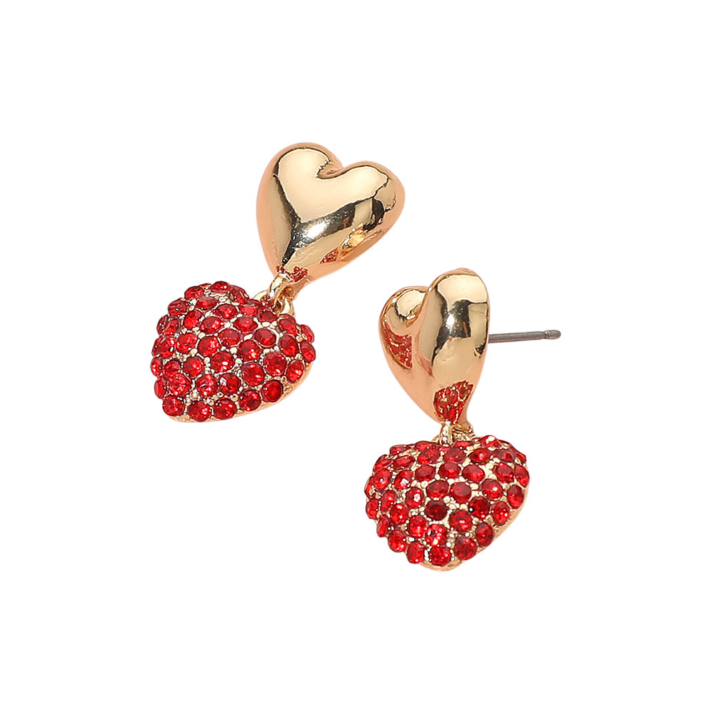 • Add a touch of romance with these sparkling double heart earrings, featuring a sleek metallic top heart and a dazzling crystal-accented lower heart. Perfect for day-to-night wear, they bring elegant charm and a playful shimmer to your style effortlessly.