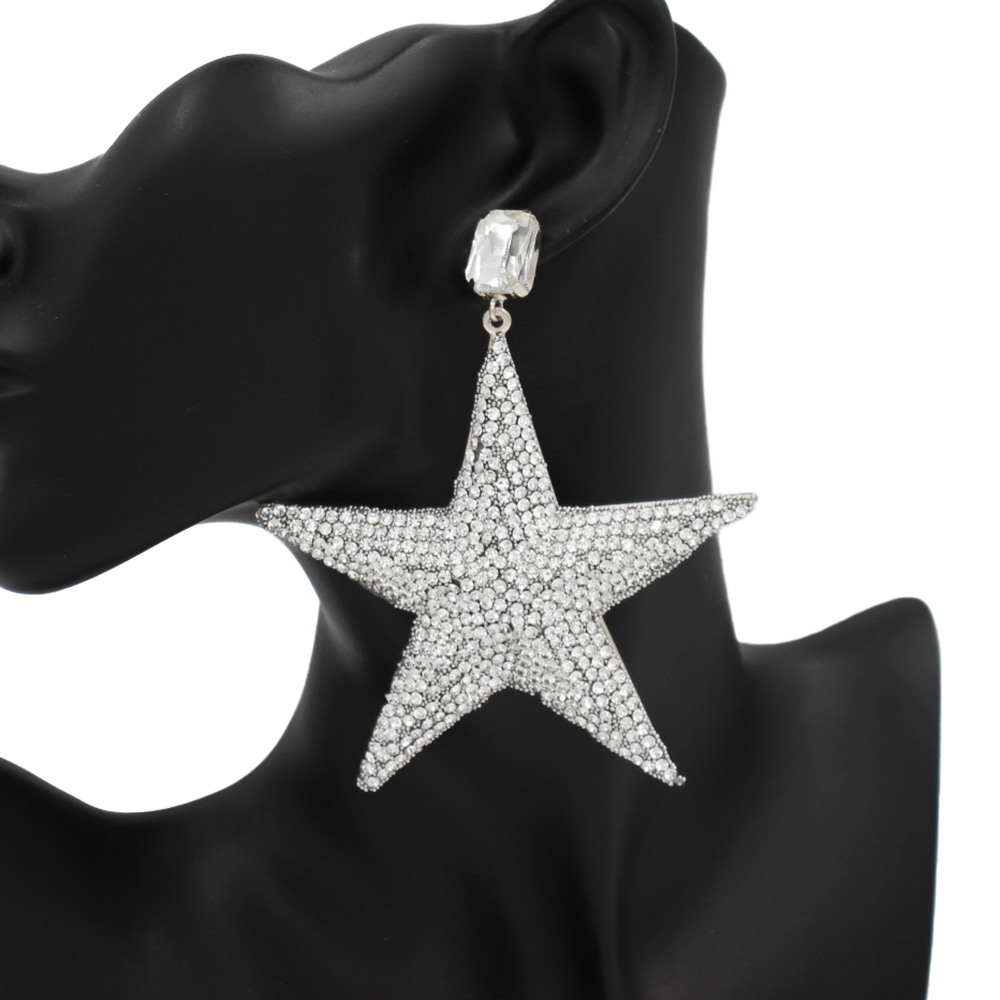 American USA Flag Rhinestone Embellished Metal Star Dangle Earrings