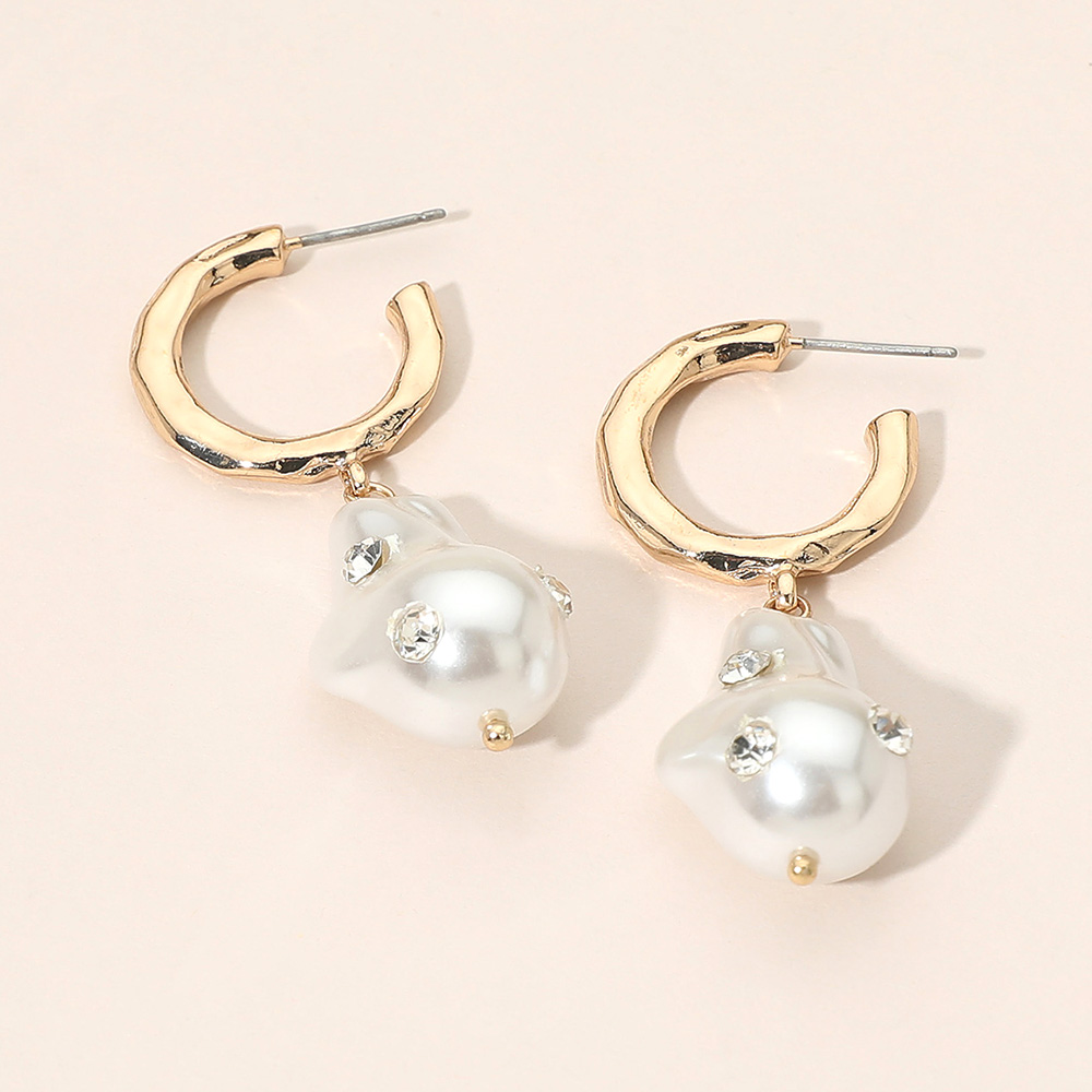 Rhinestone Embellished Organic Pearl Drop Hoop Earrings Rhinestone Embellished Organic Pearl Drop Hoop Earrings