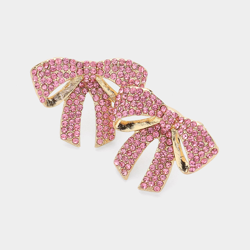 American USA Flag Colored Rhinestone Paved Bow Earrings