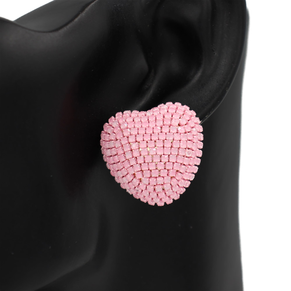 • Elegant heart stud earrings designed with a dimensional pavĂ© surface that delivers eye-catching sparkle and refined texture. A timeless yet statement-ready accessory ideal for boutiques, gift collections, special occasions, and everyday looks that elevate modern styling.