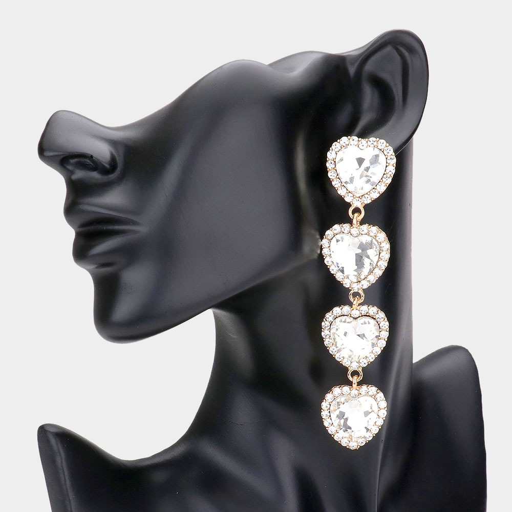 Rhinestone Trim Heart Stone Link Dangle Earrings