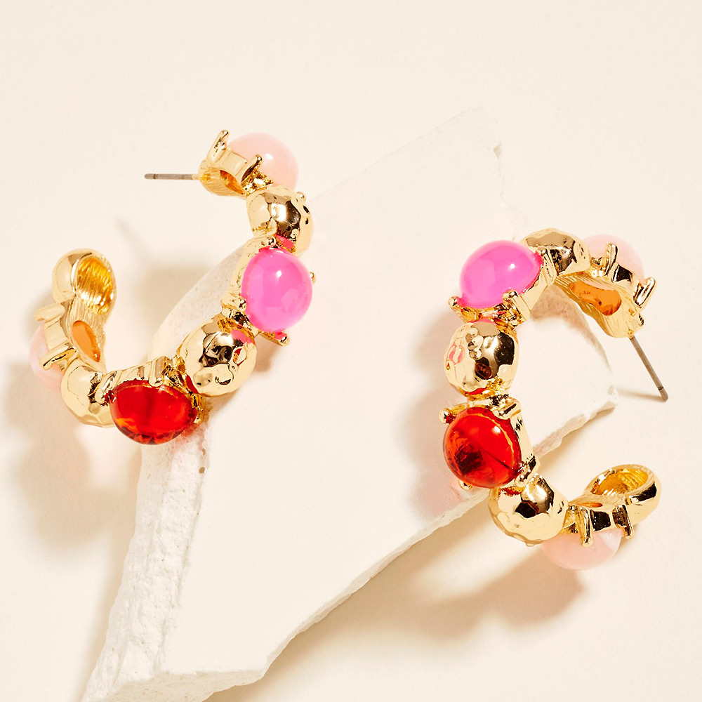 • These beaded hoop earrings feature a bold curved silhouette accented with mixed shape bead details for a playful yet elevated statement. Designed with dimensional texture and eye-catching form, they add personality to everyday outfits and styled looks. A versatile accessory ideal for boho-inspired collections, fashion-forward assortments, or gifting, offering a unique balance of structure and charm.