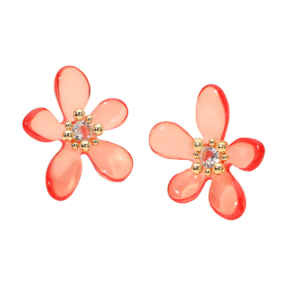 Round Center Stone Accent Transparent Resin Petal Flower Earrings Round Center Stone Accent Transparent Resin Petal Flower Earrings