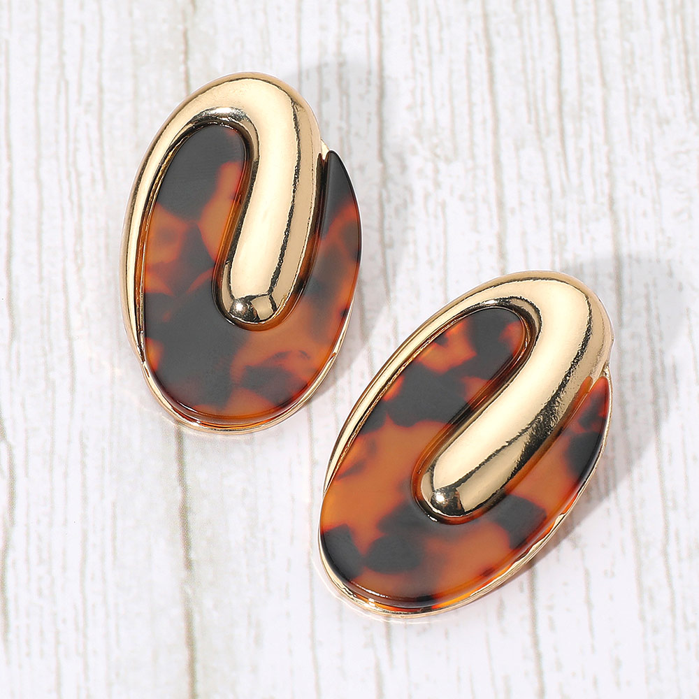 • These modern oval patterned resin earrings feature a bold, sculptural design that blends organic shapes with artistic flair. Their glossy finish and sleek curves create a timeless statement piece that adds sophistication to any outfit, from everyday chic to elegant evening wear.