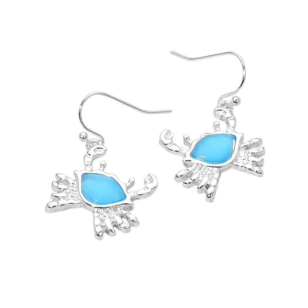 Details • Size : 0.8" X 1.3" • Fish Hook Back • Playful crab dangle earrings featuring a detailed ocean-inspired design with a smooth accent center and free-moving hook style. Lightweight and eye-catching, these earrings are ideal for beach themes, summer outfits, coastal gift shops, resort accessories, and fun statement jewelry collections. • Lead and Nickel Compliant