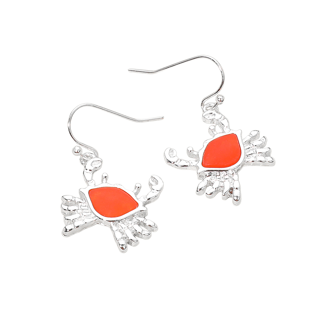 • Playful crab dangle earrings featuring a detailed ocean-inspired design with a smooth accent center and free-moving hook style. Lightweight and eye-catching, these earrings are ideal for beach themes, summer outfits, coastal gift shops, resort accessories, and fun statement jewelry collections.