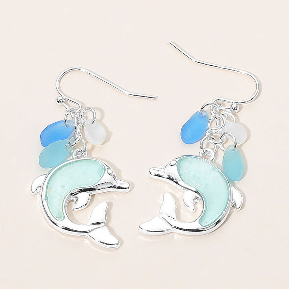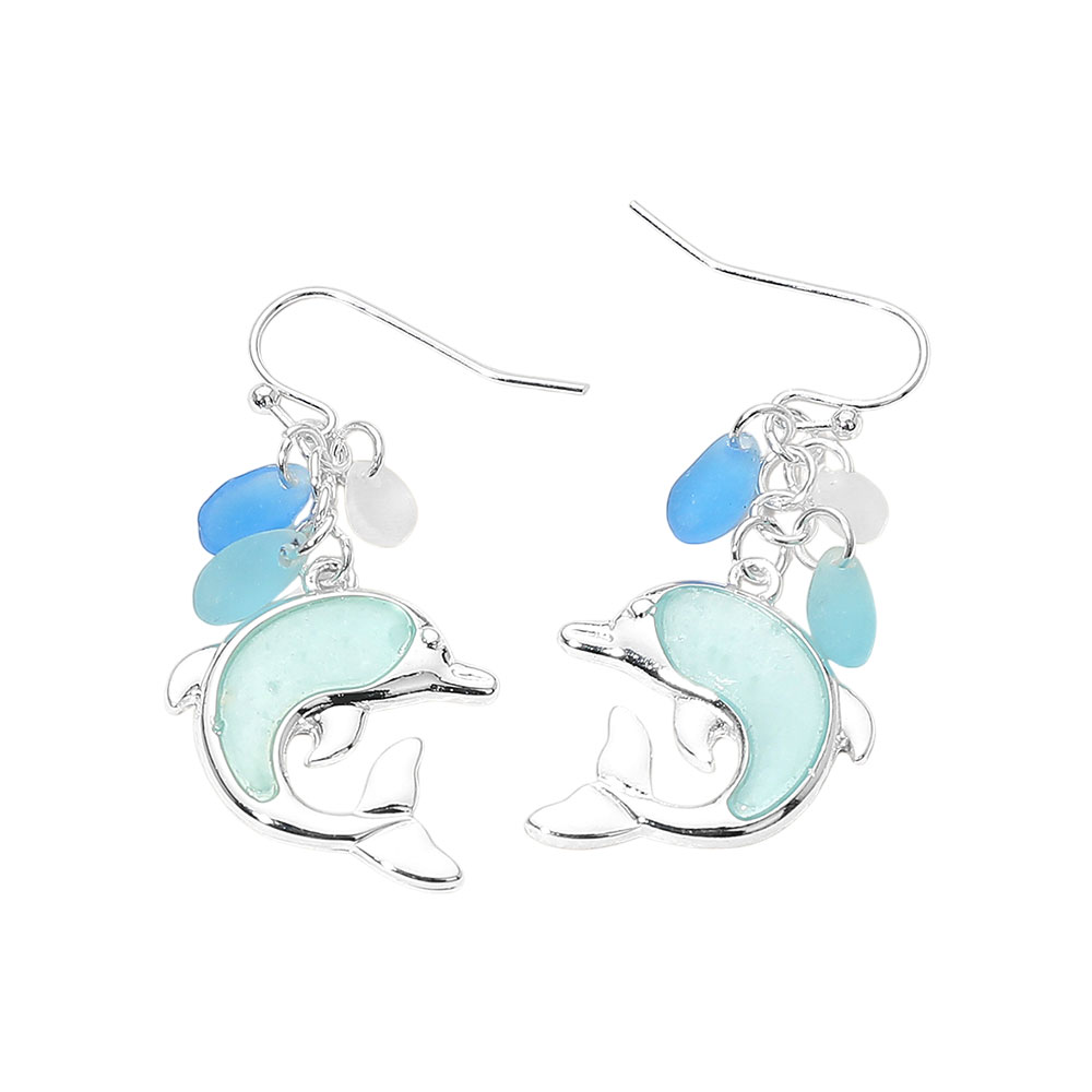 Sea Glass Dolphin Drop Dangle Earrings Sea Glass Dolphin Drop Dangle Earrings
