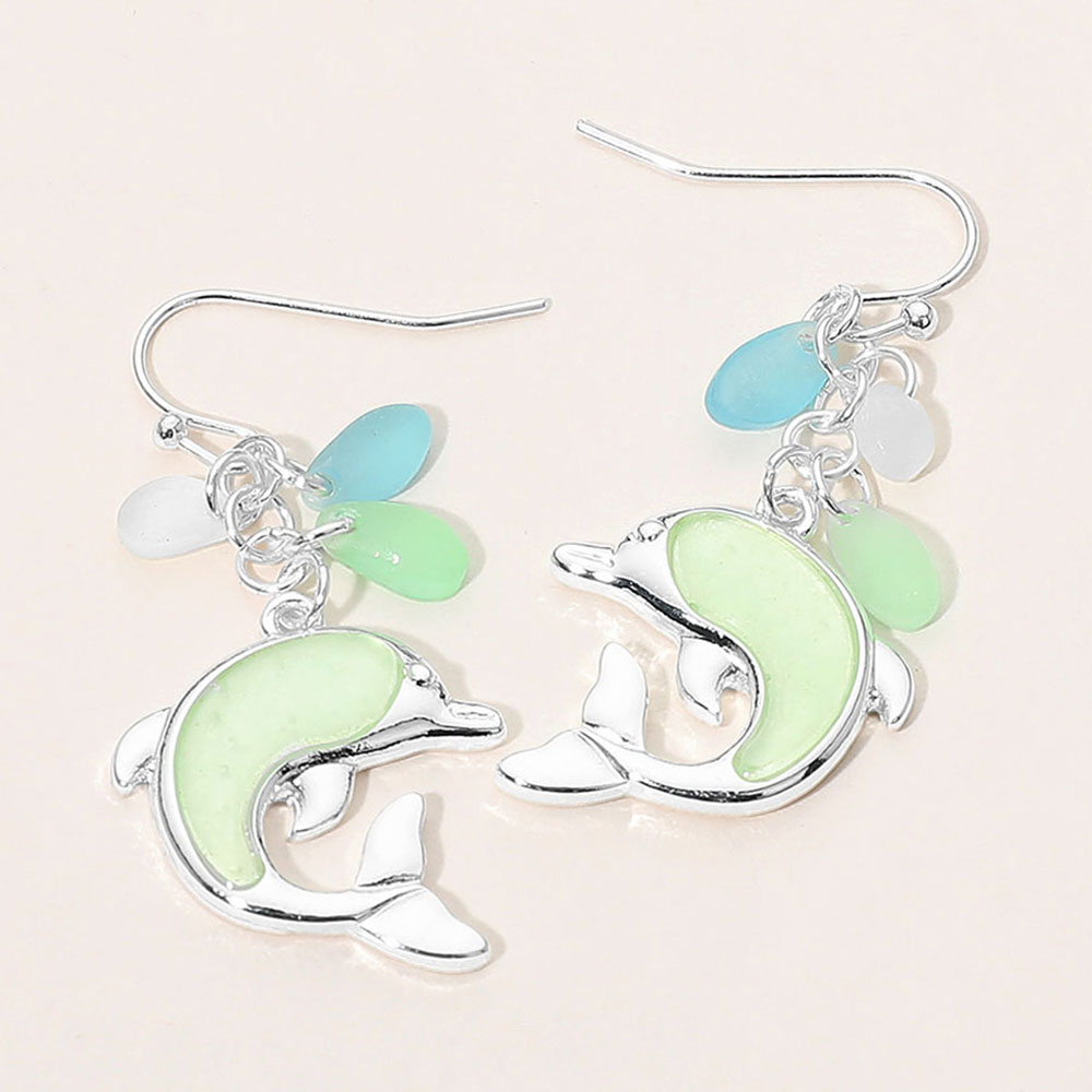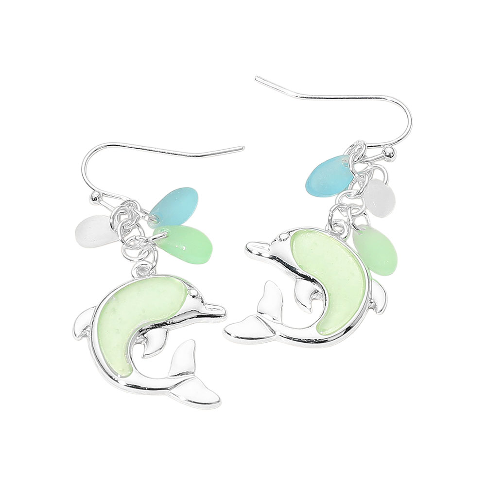 Sea Glass Dolphin Drop Dangle Earrings