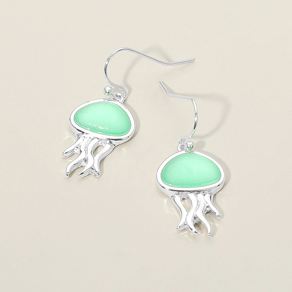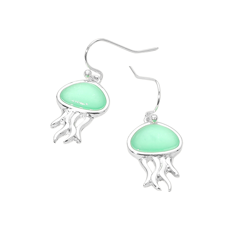 Sea Glass Jellyfish Charm Drop Dangle Earrings