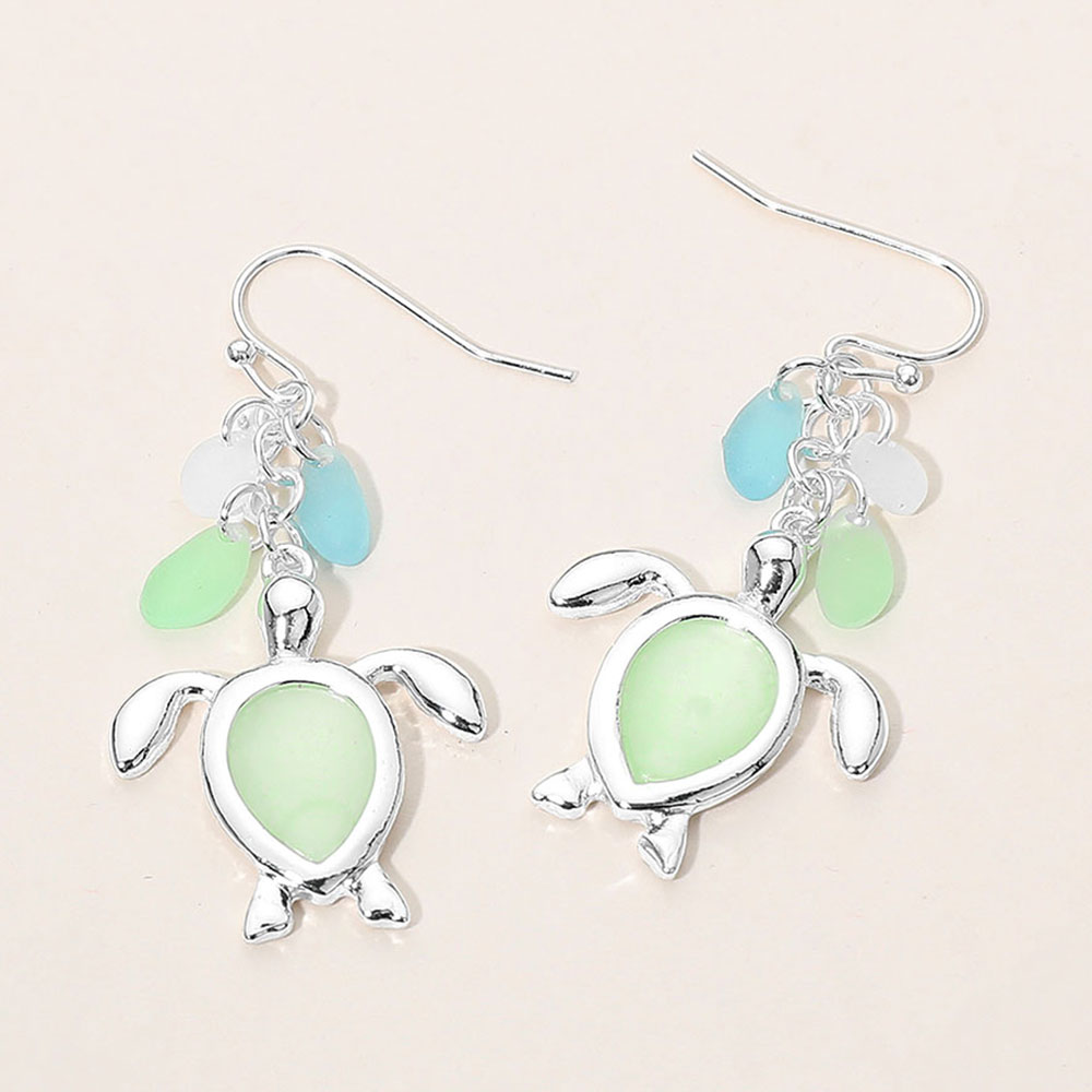 Sea Glass Sea Turtle Drop Dangle Earrings