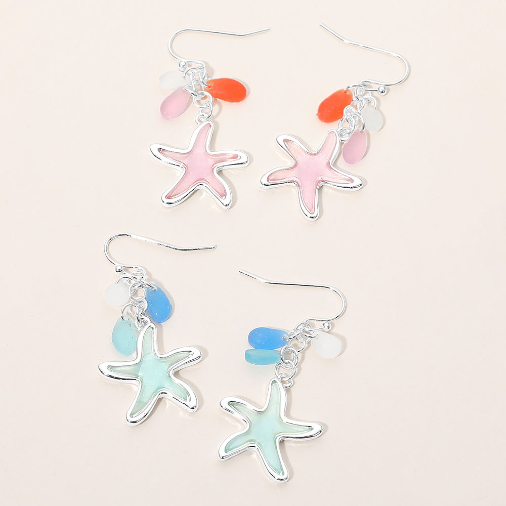 Sea Glass Starfish Drop Dangle Earrings
