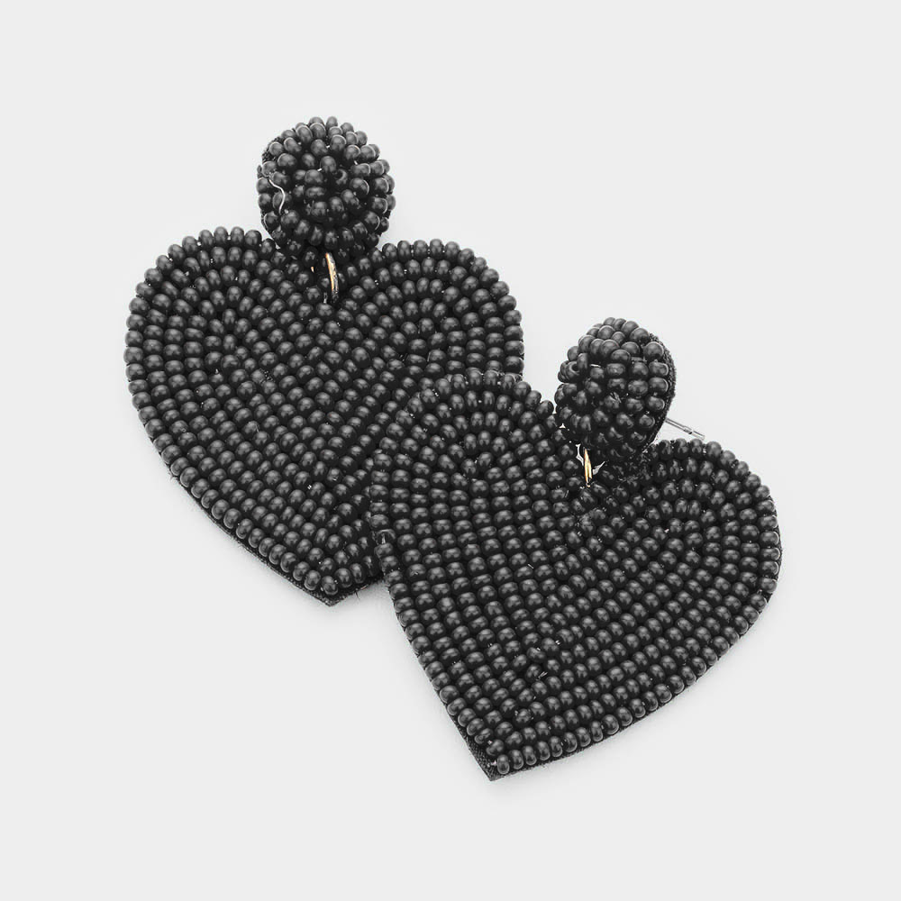 Seed Beaded Heart Drop Earrings
