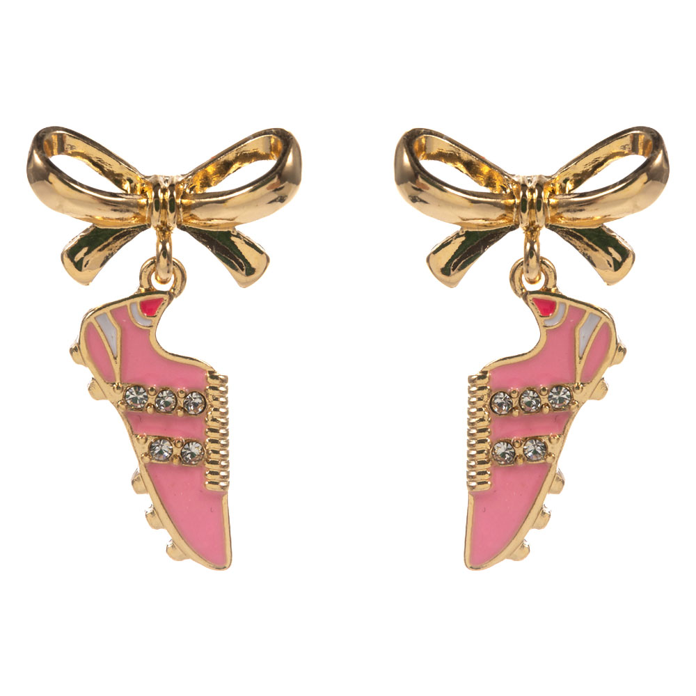 Details • Size : 0.8" X 1.3" • Titanium Post Back • Playful drop earrings featuring a detailed soccer cleat charm paired with a bow accent for sporty, feminine style. Designed with eye-catching movement, these earrings are perfect for game day outfits, tournaments, team events, and casual wear, adding fun personality to fan-inspired boutique accessory collections. • Hypoallergenic • Lead and Nickel Compliant