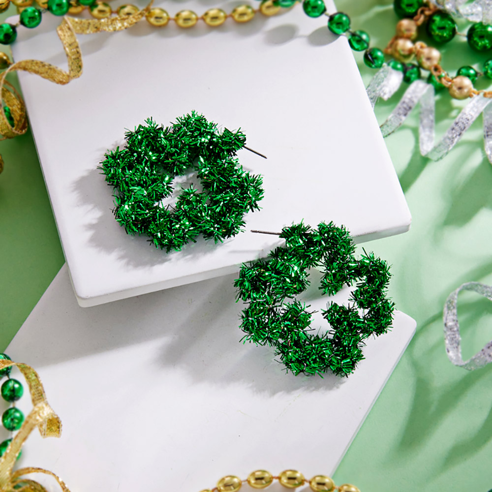 Details • Size : 1.6" X 1.6" • Titanium Post Back • These shamrock wreath hoop earrings feature a festive textured design inspired by classic St. Patrick’s Day symbols. Lightweight and comfortable for all-day wear, they add a cheerful seasonal touch to outfits and themed looks. Perfect for holiday celebrations, party favors, gifting, or adding playful charm to festive jewelry collections. • Lead and Nickel Compliant • Hypoallergenic