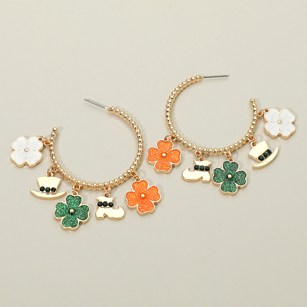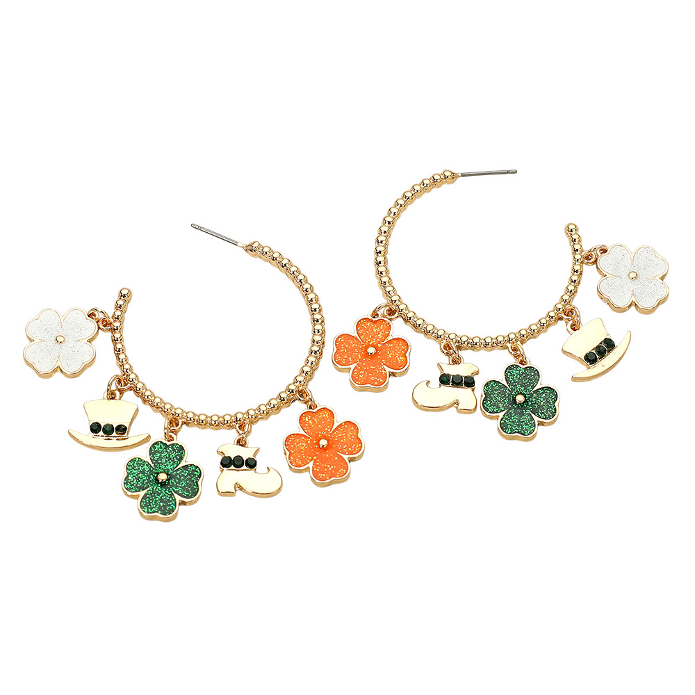 St Patricks Hat Shamrock Charm Drop Embellished Hoop Earrings St Patricks Hat Shamrock Charm Drop Embellished Hoop Earrings