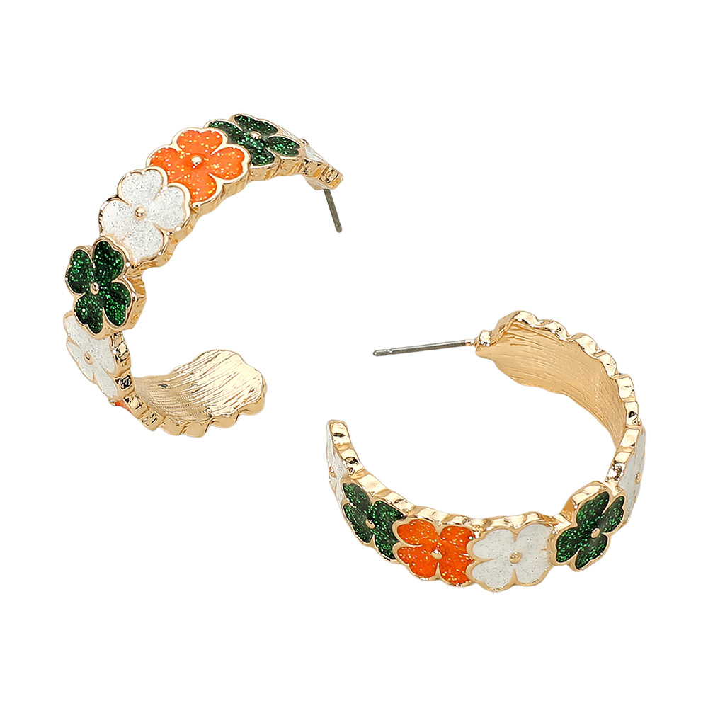 Details • Size : 1.25" X 1.25" x 0.4" • Post Back • Festive clover hoop earrings designed for St. Patrick’s Day, featuring layered shamrock details that wrap the hoop for a bold seasonal look. Perfect for holiday celebrations, parades, themed outfits, gifting, and retail displays that highlight lucky symbols and playful charm. • Lead and Nickel Compliant