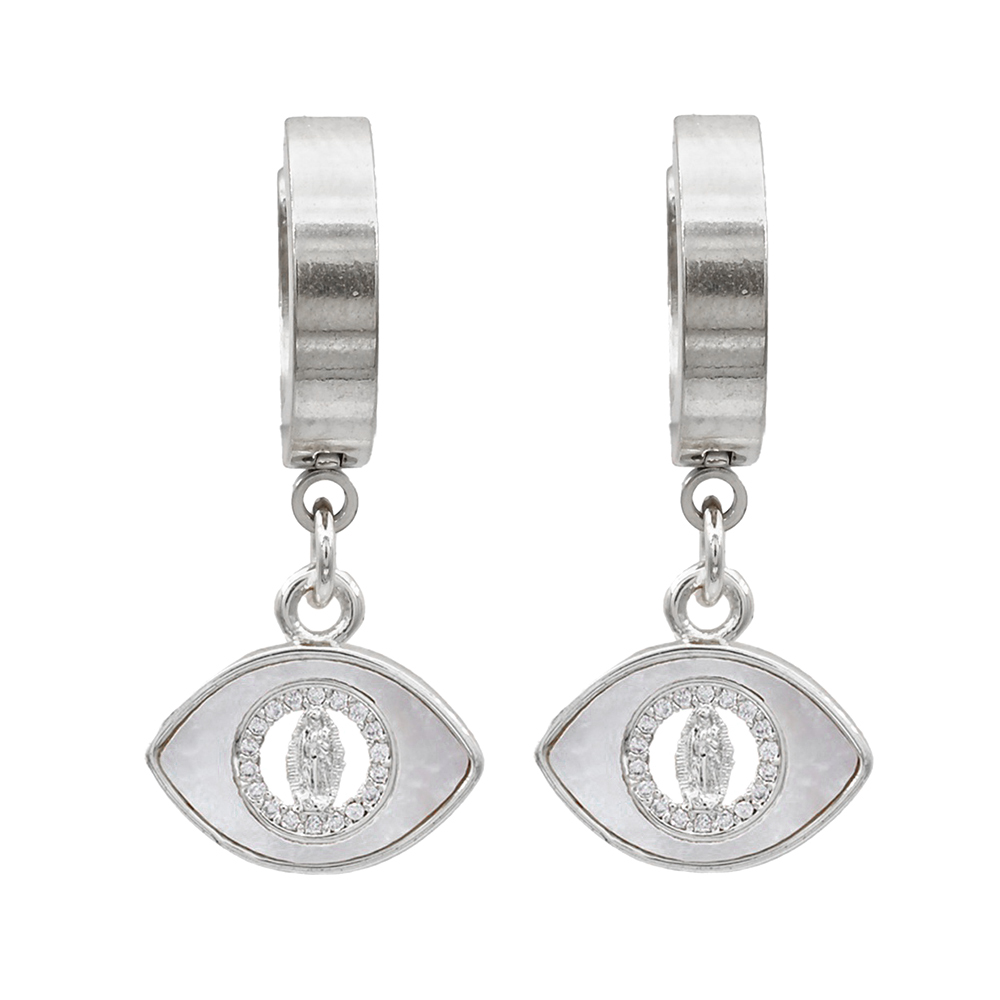 Stainless Steel Mother of Pearl CZ Stone Rim Virgin Mary Accent Evil Eye Charm Dangle Huggie Earrings Stainless Steel Mother of Pearl CZ Stone Rim Virgin Mary Accent Evil Eye Charm Dangle Huggie Earrings Stainless Steel Mother of Pearl CZ Stone Rim Virgin Mary Accent Evil Eye Charm Dangle Huggie Earrings
