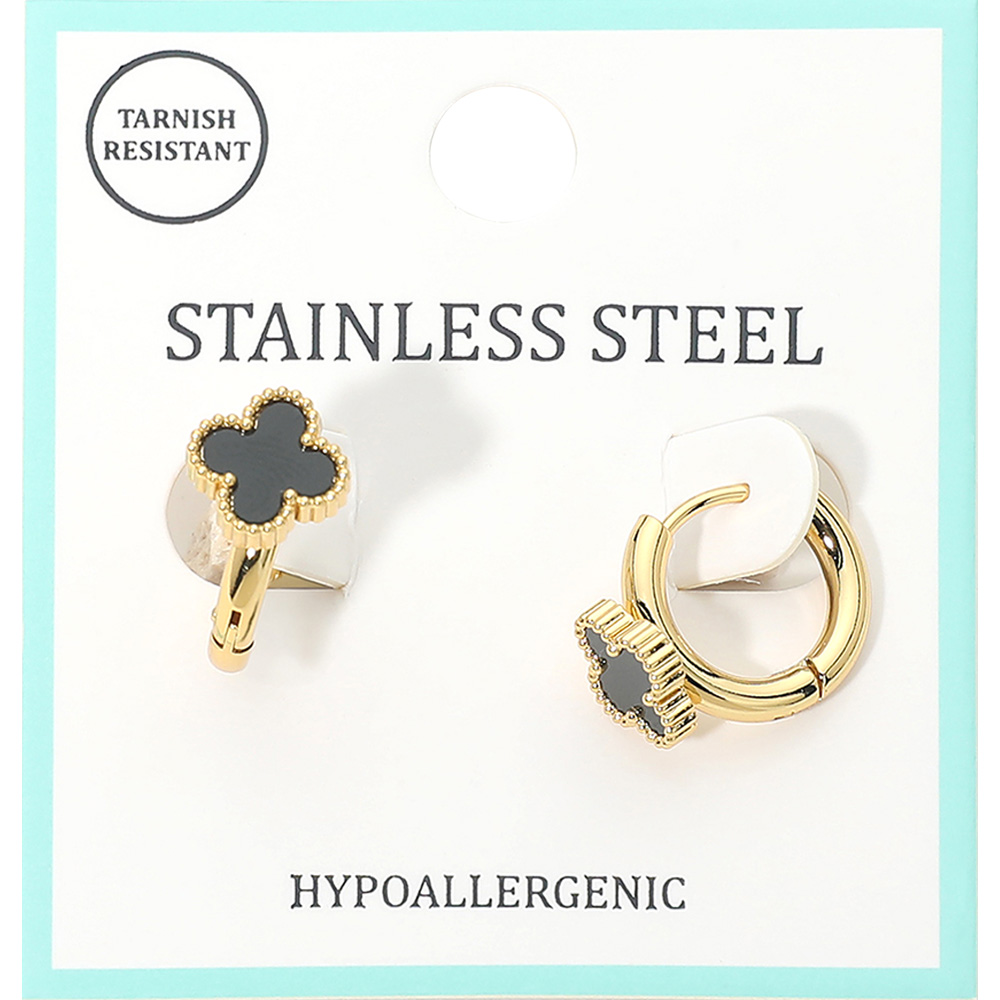 Stainless Steel Quatrefoil Accent Huggie Hoop Earrings Stainless Steel Quatrefoil Accent Huggie Hoop Earrings Stainless Steel Quatrefoil Accent Huggie Hoop Earrings