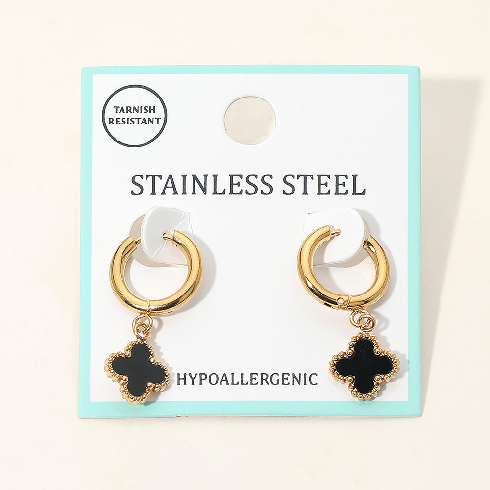 Stainless Steel Quatrefoil Charm Drop Dangle Huggie Hoop Earrings Stainless Steel Quatrefoil Charm Drop Dangle Huggie Hoop Earrings Stainless Steel Quatrefoil Charm Drop Dangle Huggie Hoop Earrings