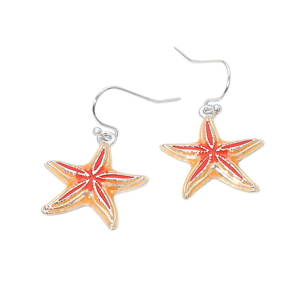 Details • Size : 0.8" X 1.25" • Fish Hook Back • Whimsical starfish dangle earrings featuring a sculpted seaside-inspired design with graceful movement. A lightweight statement accessory perfect for beach boutiques, resort collections, summer assortments, vacation gift shops, and ocean-themed jewelry displays that add playful charm to everyday styling. • Lead and Nickel Compliant