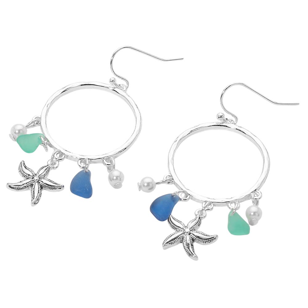 Details • Size : 1" X 2.2" • Fish Hook Back • These hoop drop earrings feature a playful starfish charm accented with smooth bead details for a seaside-inspired statement. Designed with lightweight movement and an open hoop silhouette, they offer comfortable wear while adding charm and personality. Perfect for vacation styling, summer outfits, or everyday looks, these earrings bring a fun yet polished touch to any accessory collection. • Lead and Nickel Compliant