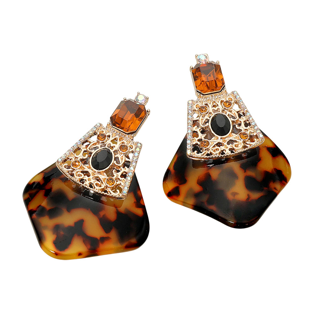 • Luxurious vintage-inspired statement earrings featuring ornate filigree detailing and radiant gem accents. The bold geometric drop shape adds sophistication and drama, making these earrings a stunning choice for evening wear, parties, or elegant special occasions.