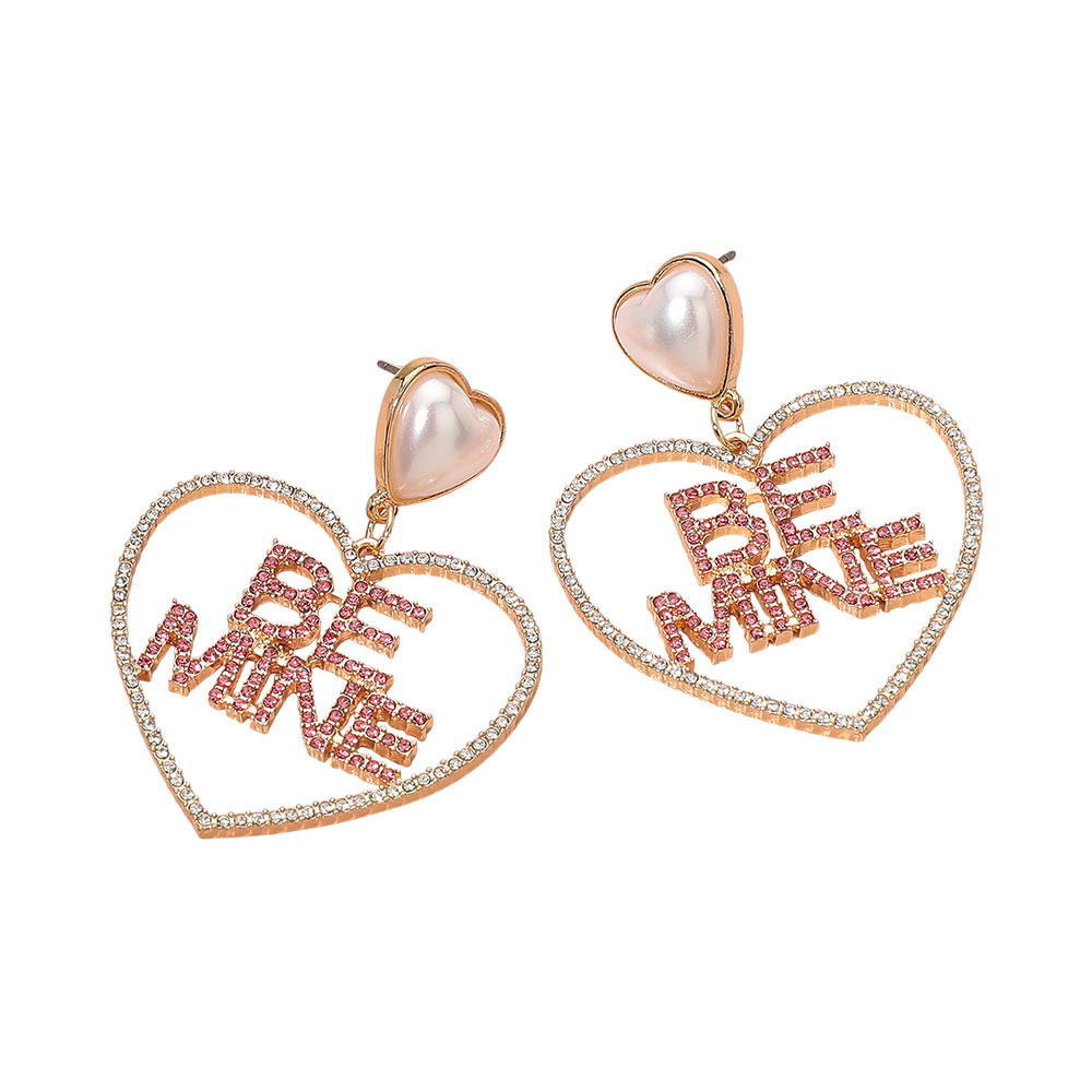 Details • Size : 1.6" X 2" • Post Back • Show your romantic side with these sparkling “Be Mine” heart dangle earrings. Featuring a radiant open-heart design and elegant detailing, they’re perfect for adding a touch of love to any outfit. Ideal for gifting or celebrating special occasions with charm and style. • Lead and Nickel Compliant