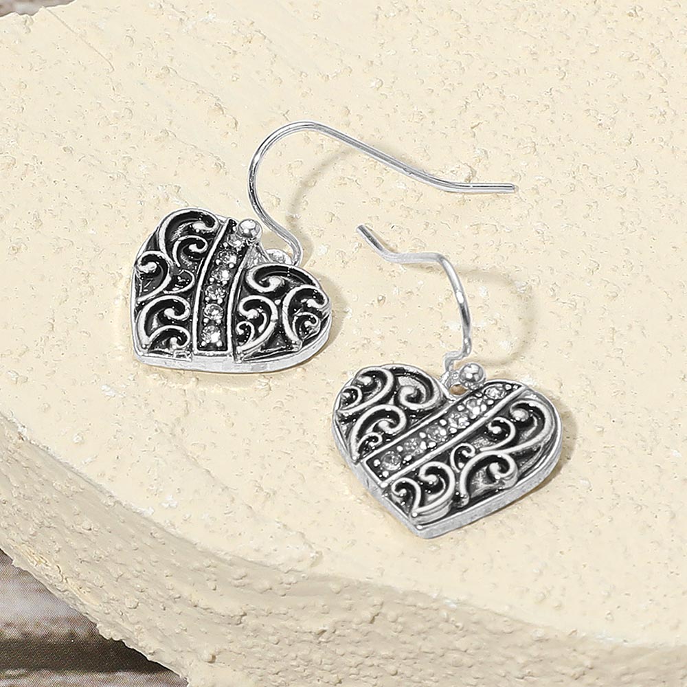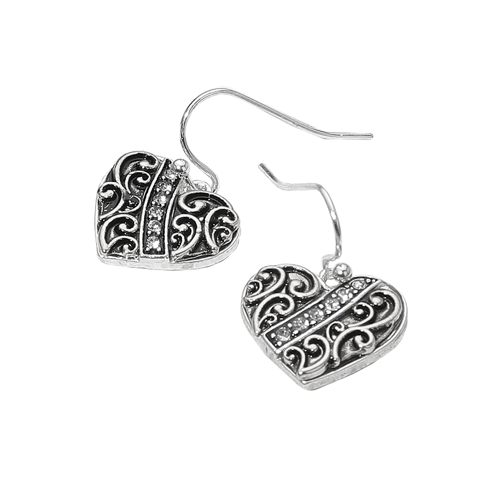 Stone Paved Vintage Metal Heart Dangle Earrings Stone Paved Vintage Metal Heart Dangle Earrings